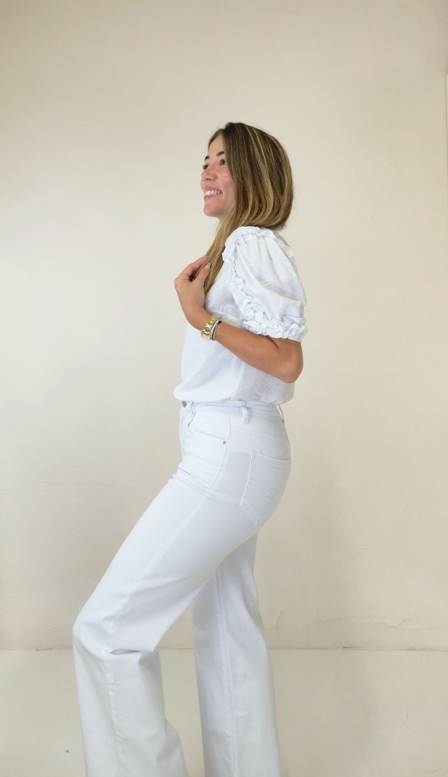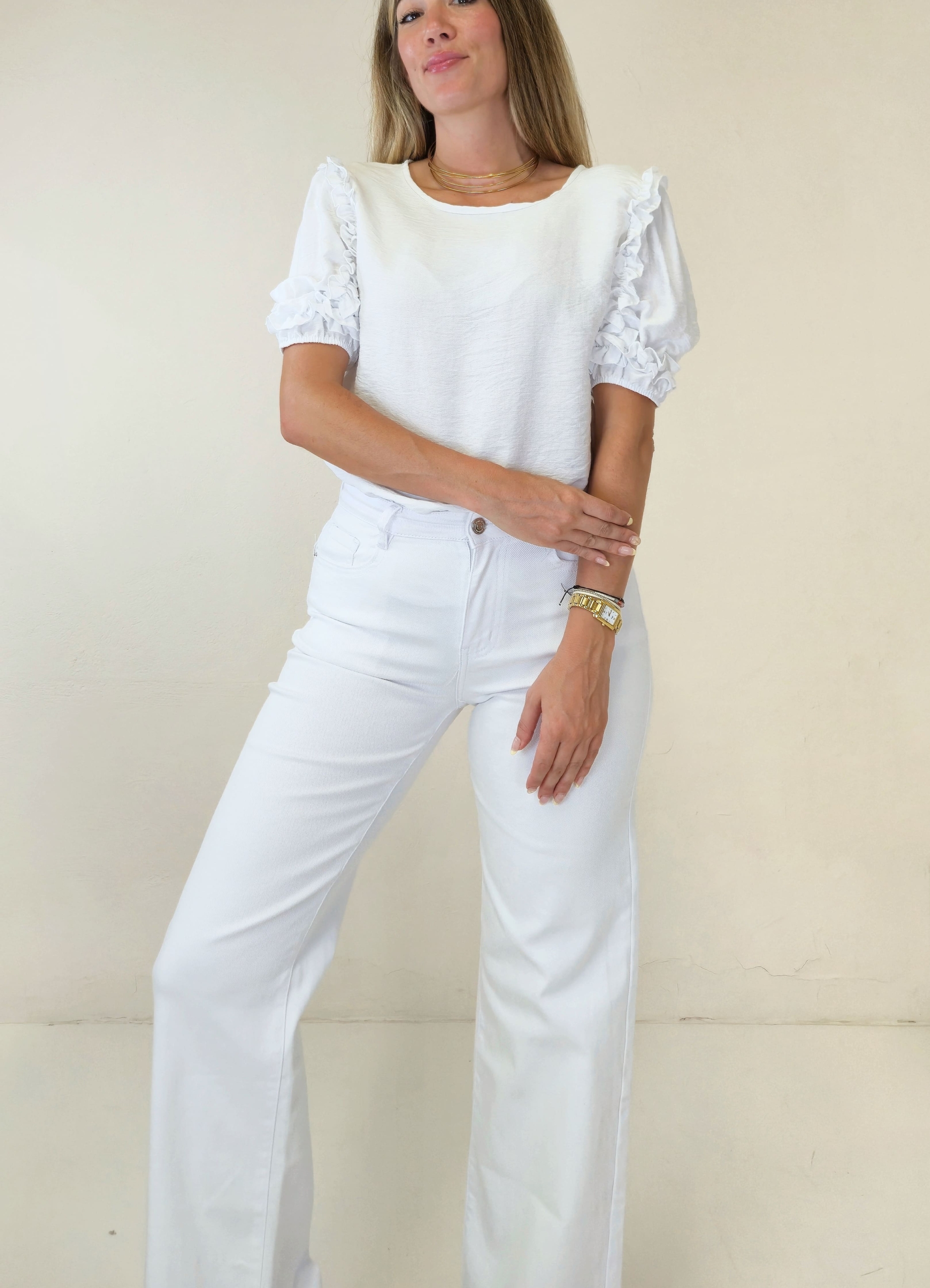 Blusa blanca de manga corta.