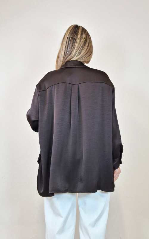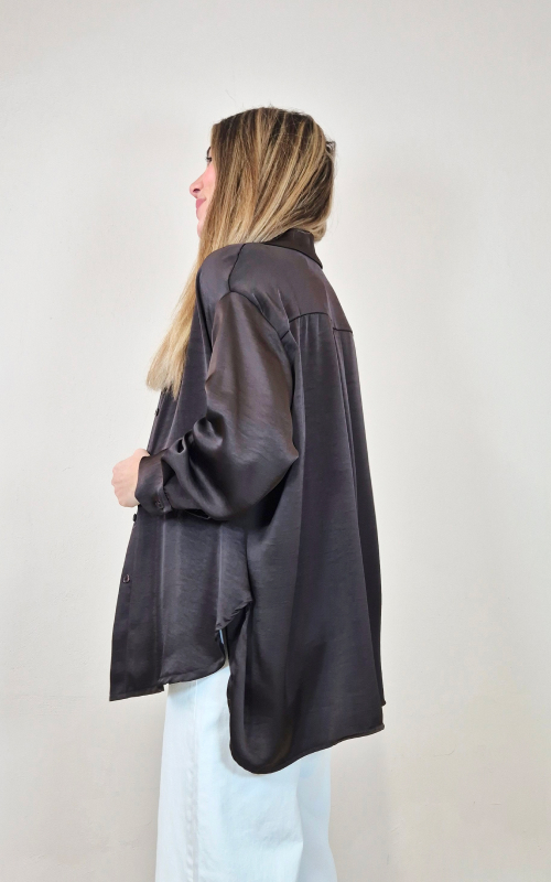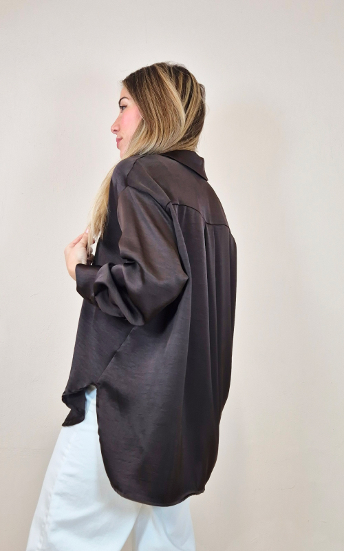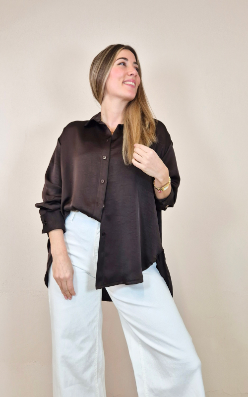 Camisa satén color chocolate.