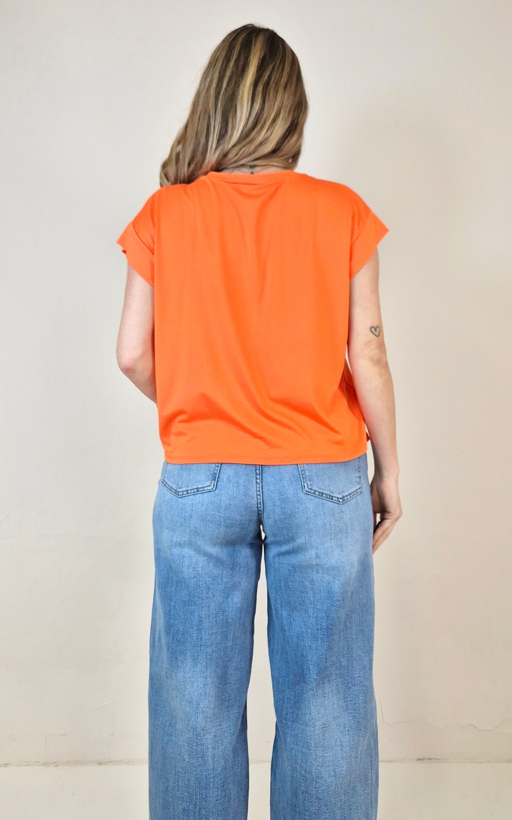 Camiseta básica de manga corta y cuello redondo.