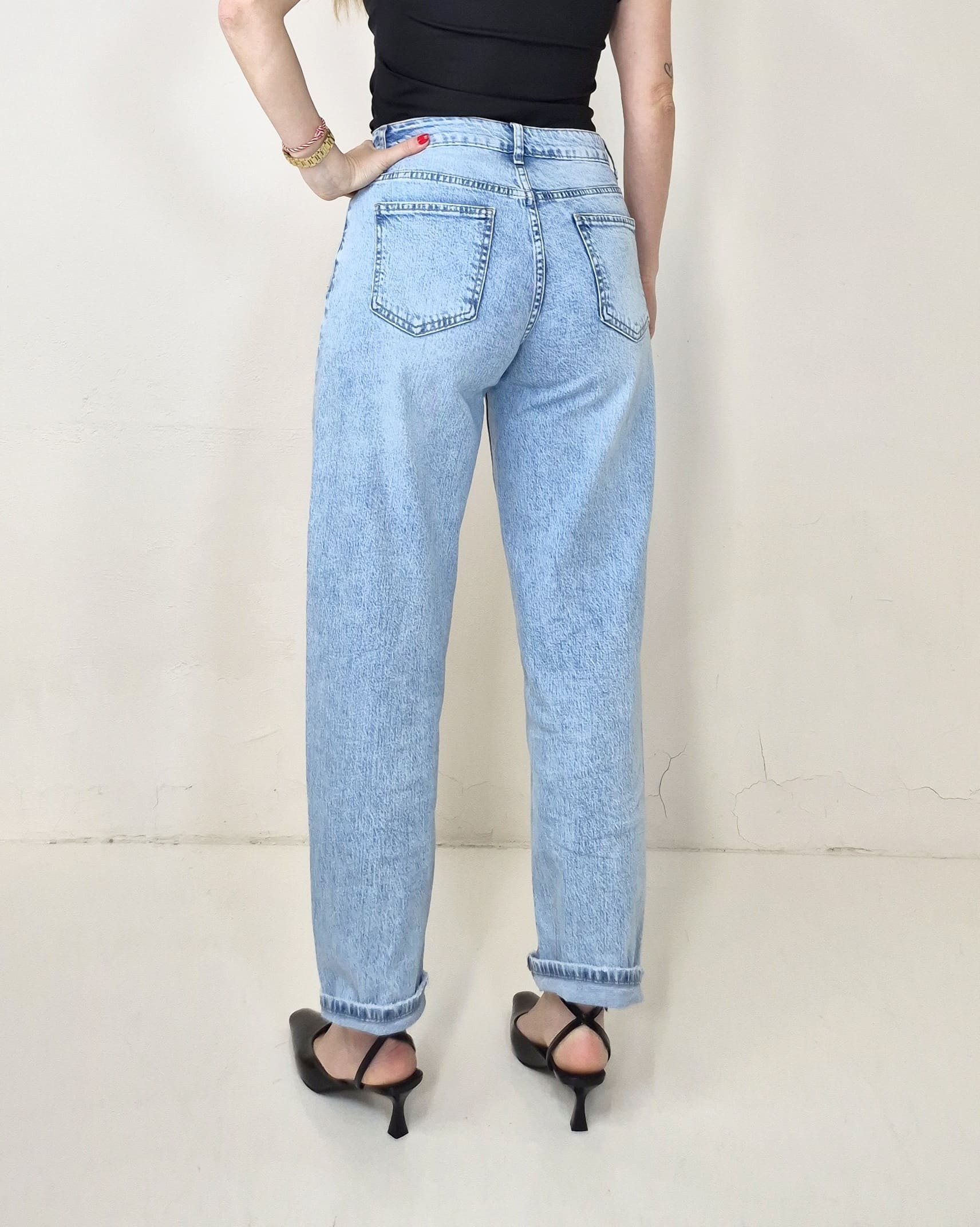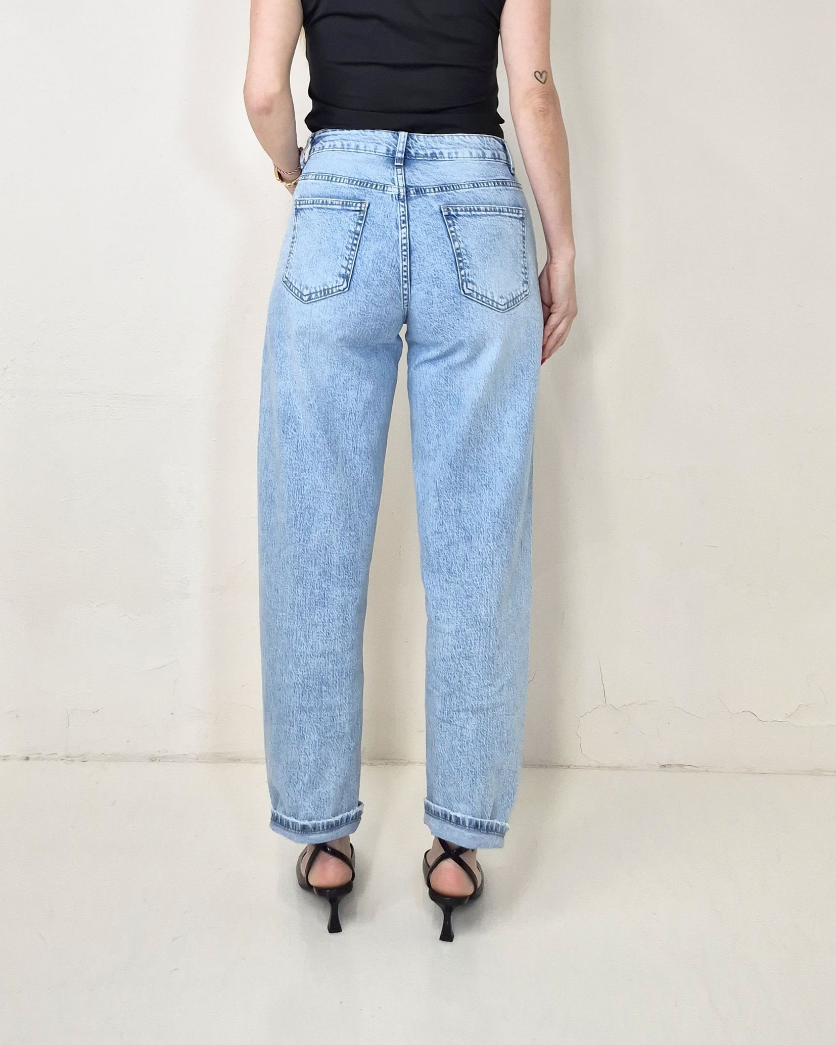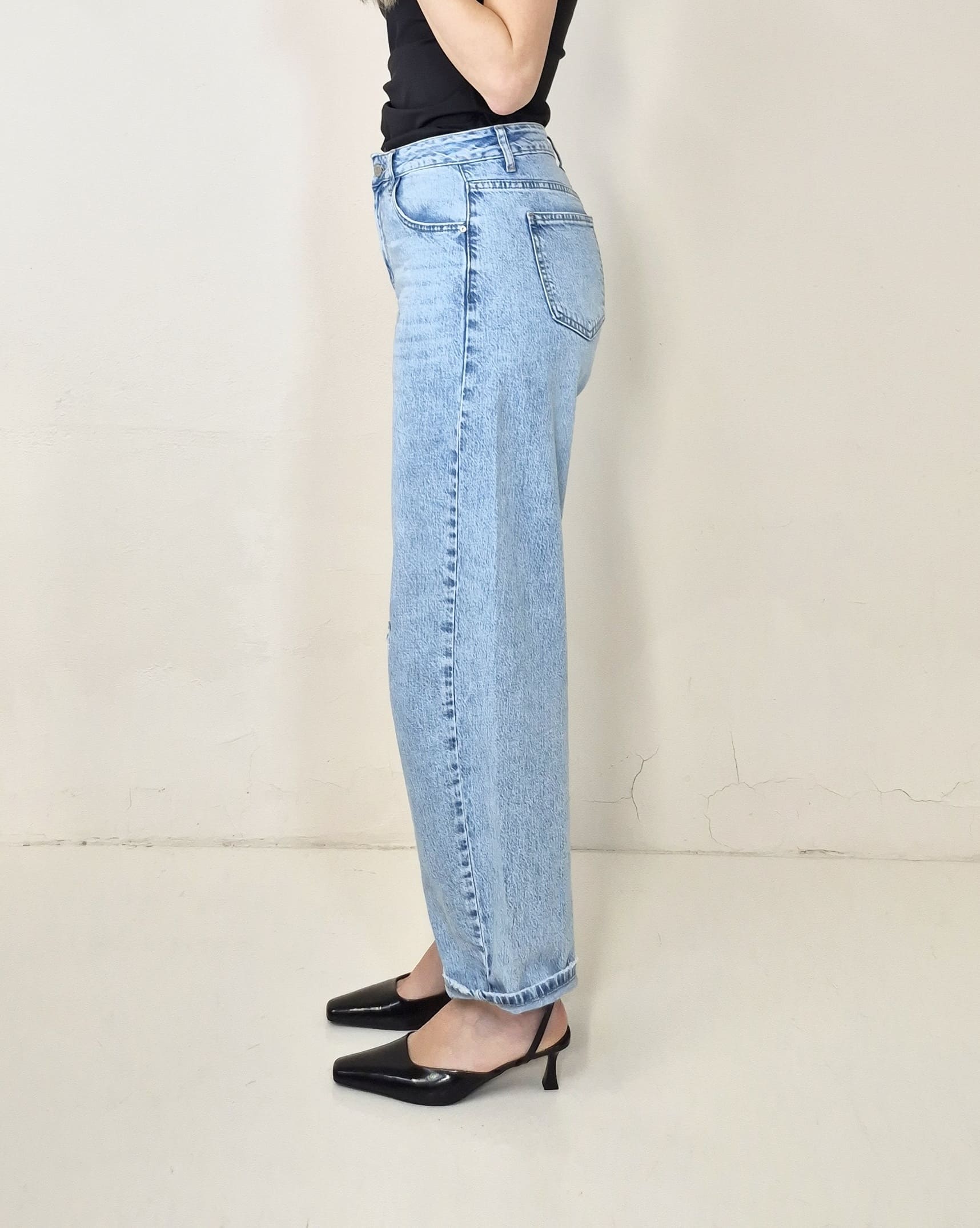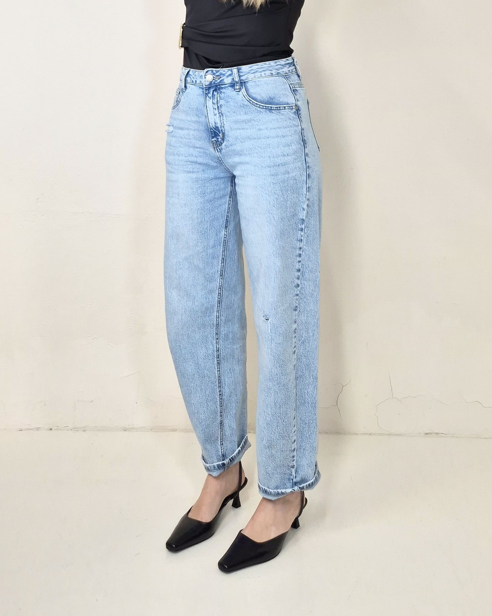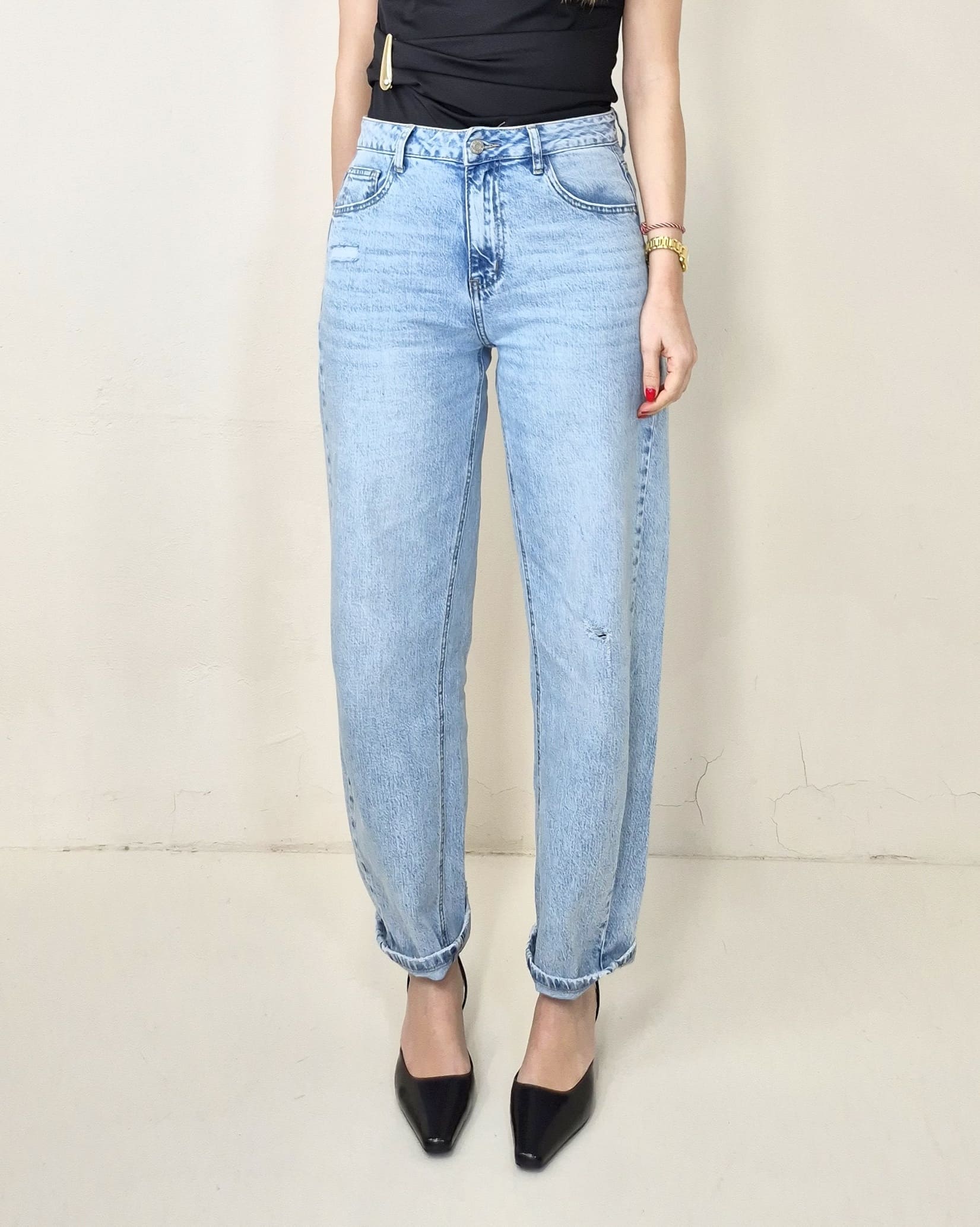 Jeans bombacho de talle alto con diseño de cinco bolsillos.