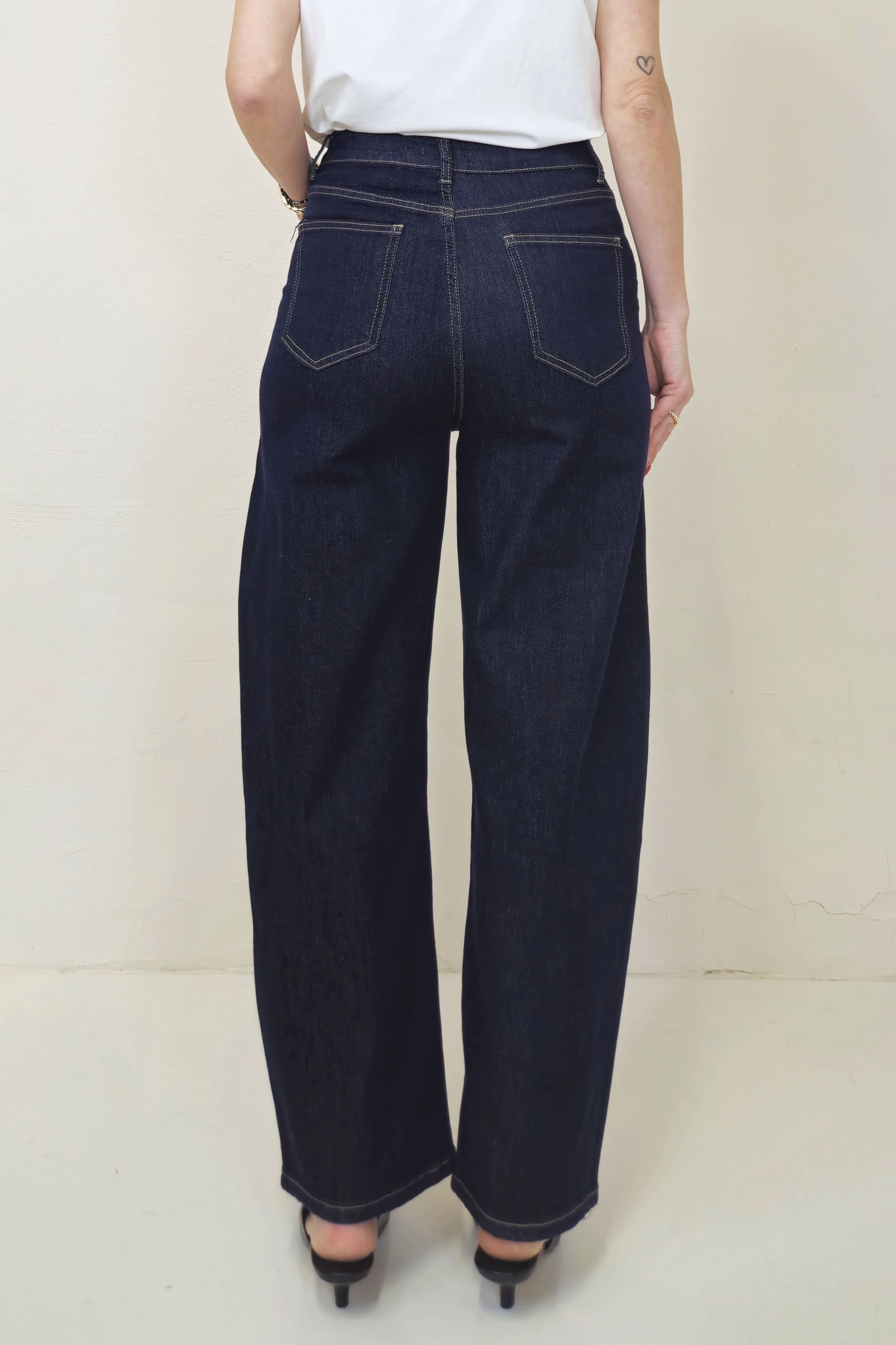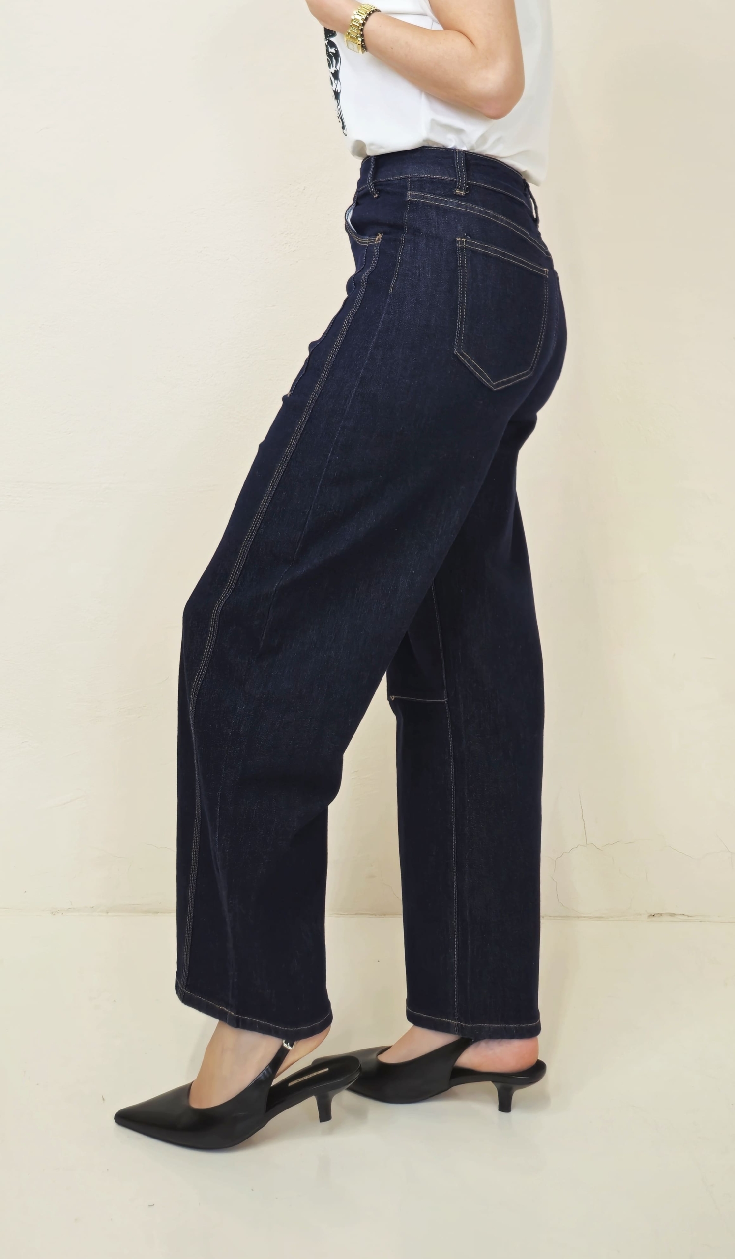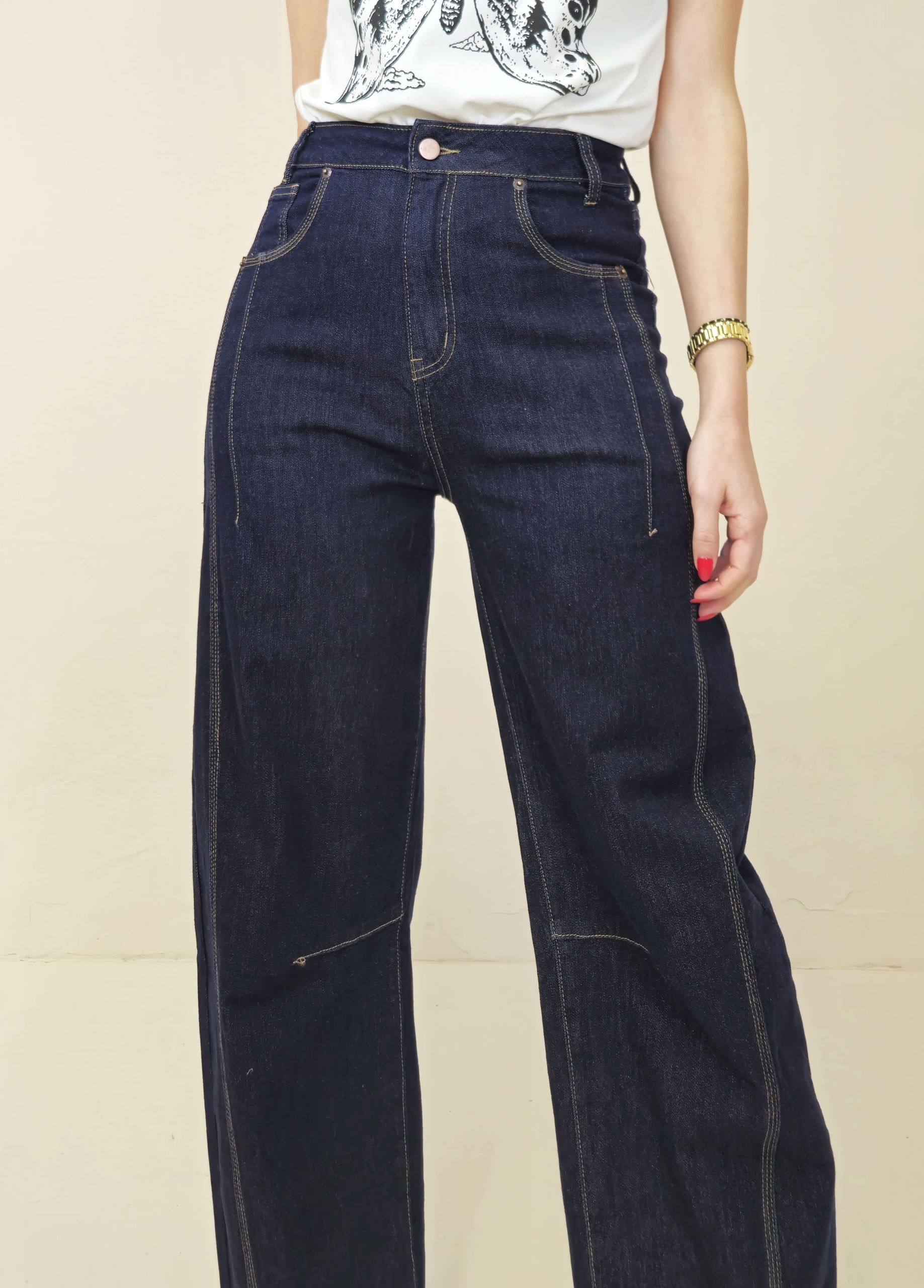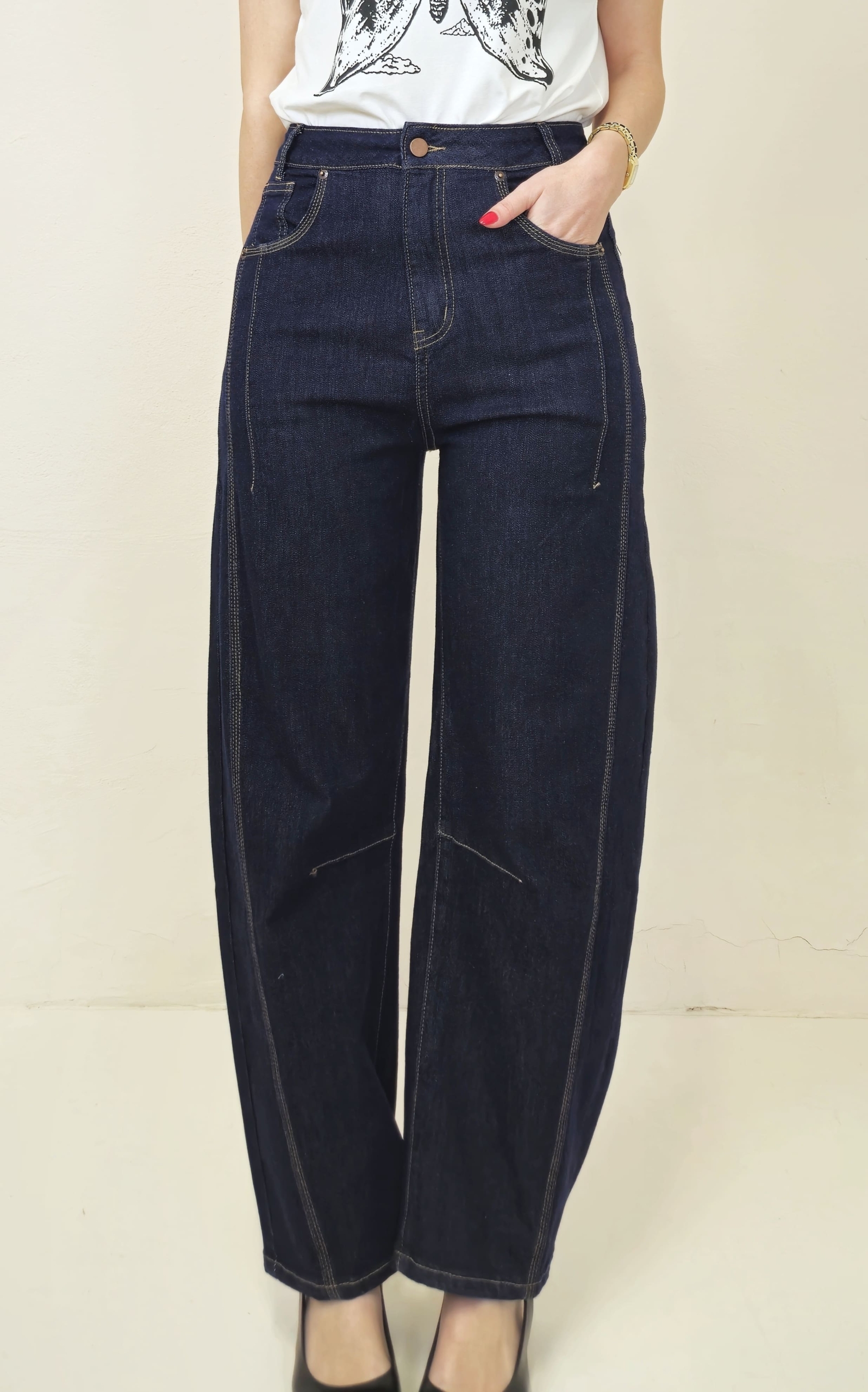Jeans bombacho de talle alto con diseño de cinco bolsillos.