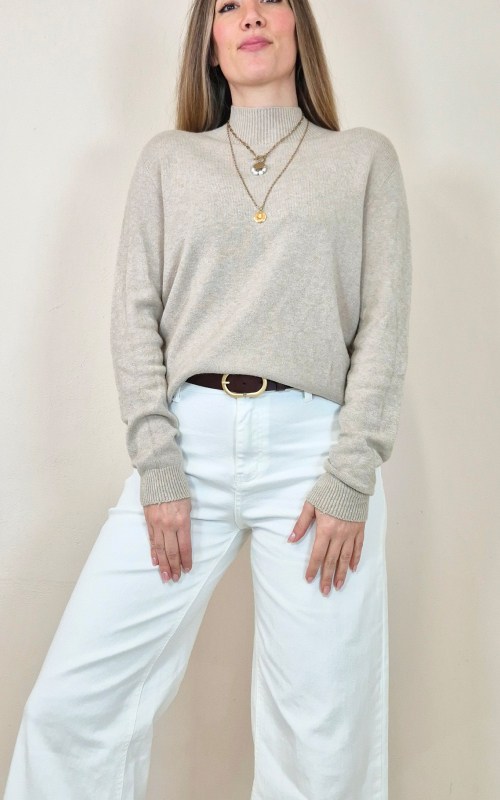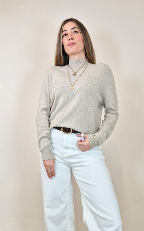 Cuello subido, manga larga.