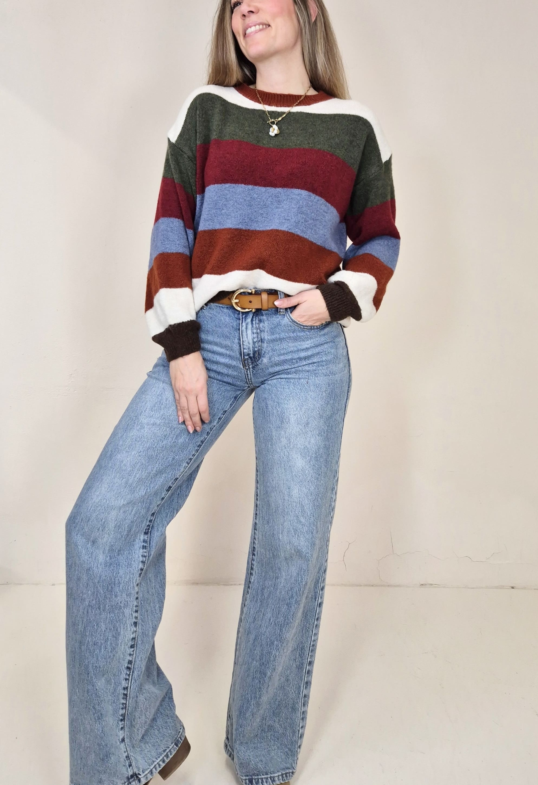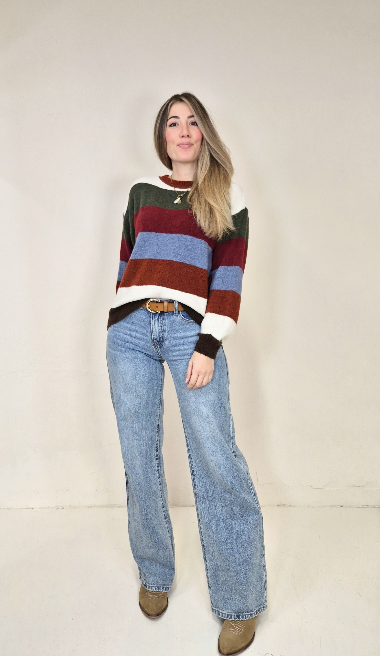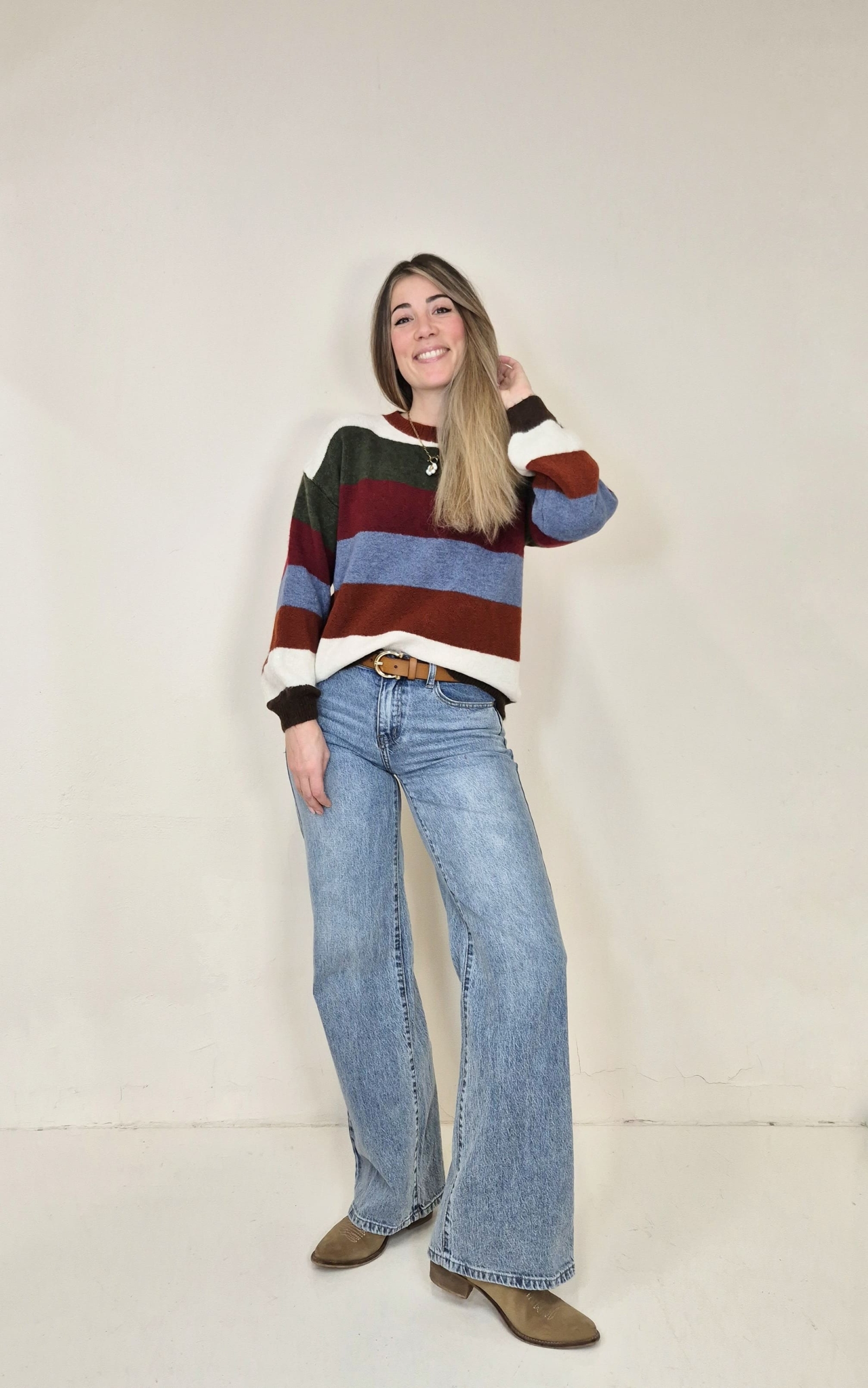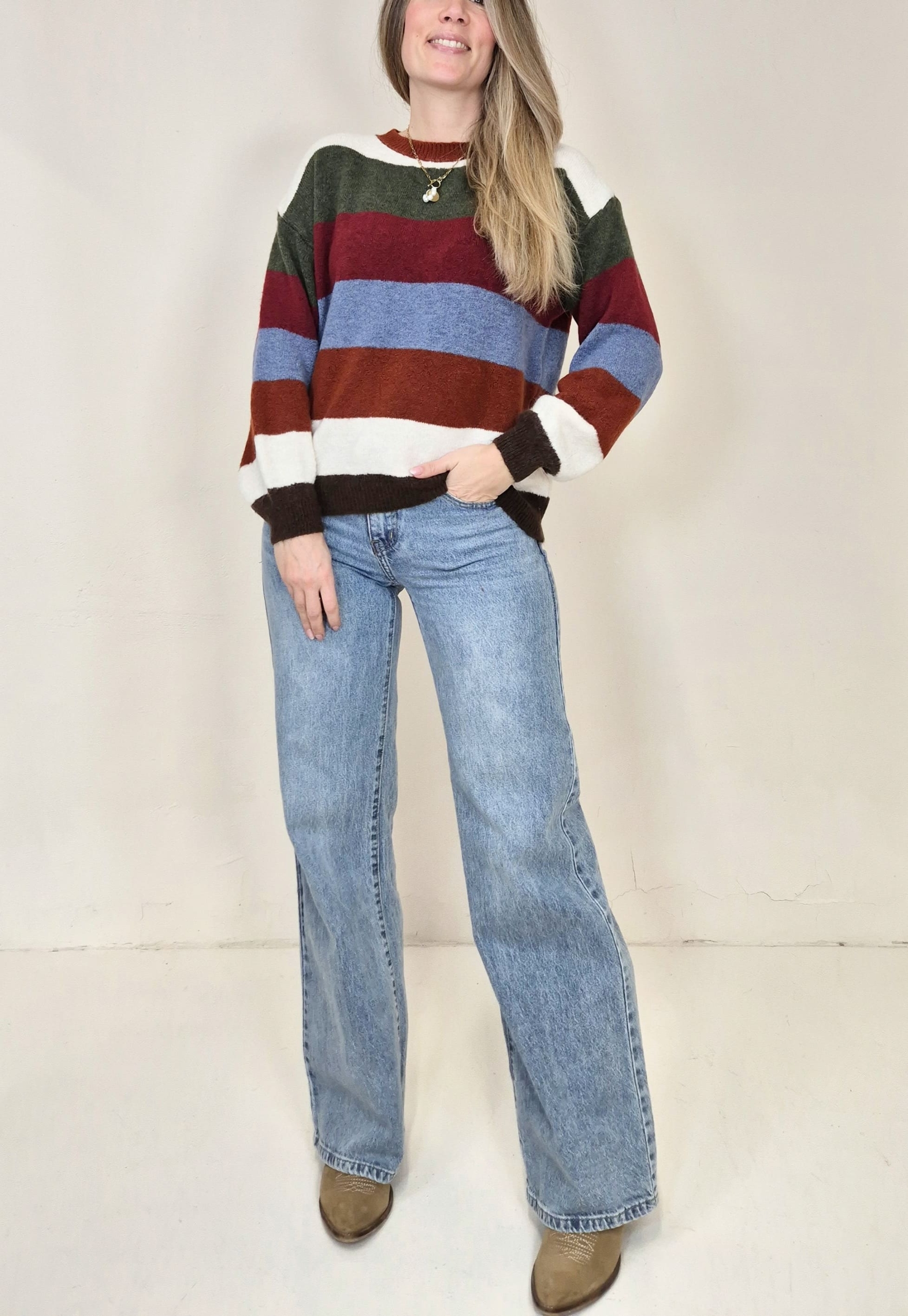 Jersey de punto a rayas de colores.