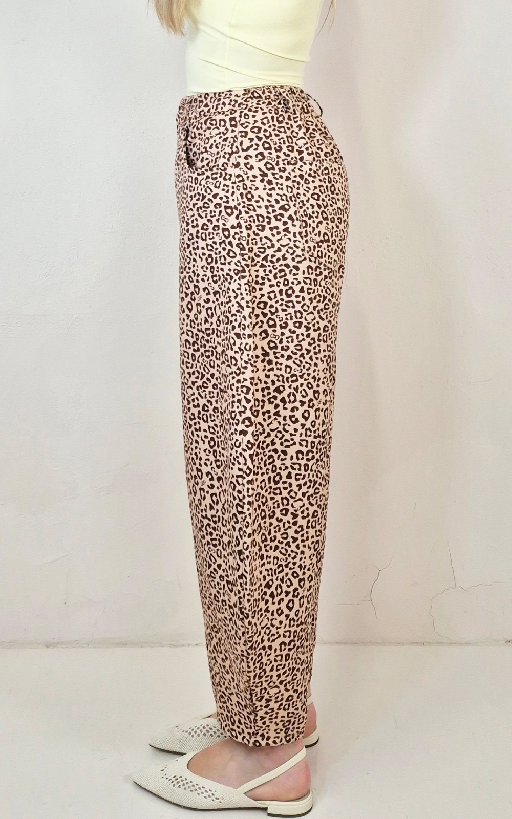 Pantal贸n globo con estampado animal print en tonos suaves, una prenda c贸moda y diferente que aporta much铆simo estilo. Su silueta amplia y con volumen lo convierte en una opci贸n ideal para looks relajados pero con personalidad.