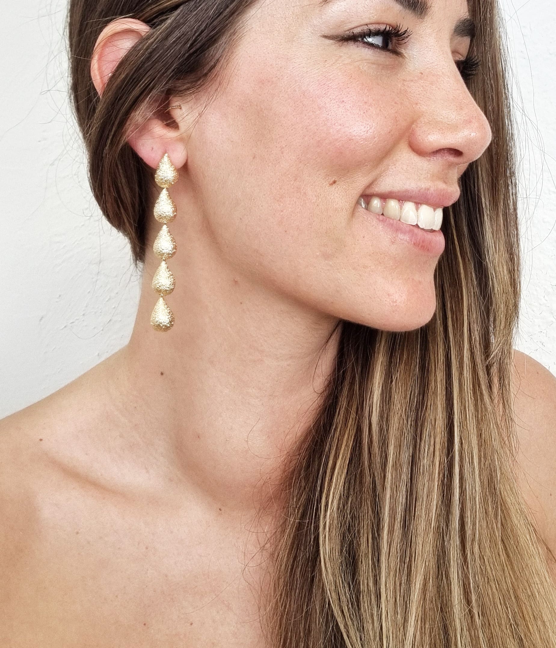 Pendiente de gotas doradas colgantes.