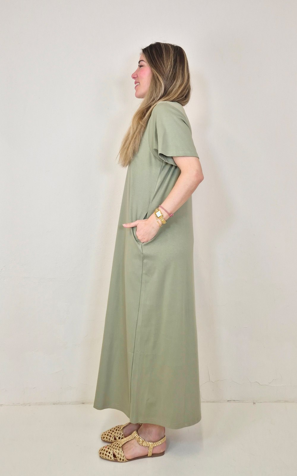 Vestido largo oversize en color verde suave, confeccionado en tejido suave y ligero, ideal para quienes buscan comodidad sin renunciar a un look actual. Su diseño recto, limpio y muy versátil lo convierte en una prenda fácil de llevar tanto con sandalia plana como con accesorios más especiales. El color marrón chocolate aporta ese tono elegante y combinable que funciona muy bien en cualquier momento del día.